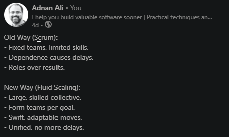 So yeah, Scrum is the old way. Which brings me to the point of this newsletter.